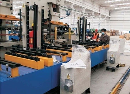 2. 換模臺(tái)車采用軌道行走方式,傳感器+機(jī)械定位方式